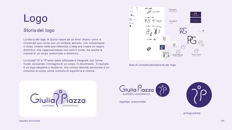 Giulia Piazza is an osteopath who needed to create her own identity and launch her business online. Osteopathy is a highly competitive field, and to make her identity stand out, I researched the main competitors to tailor Giulia’s visual identity as closely as possible to the services she offers.